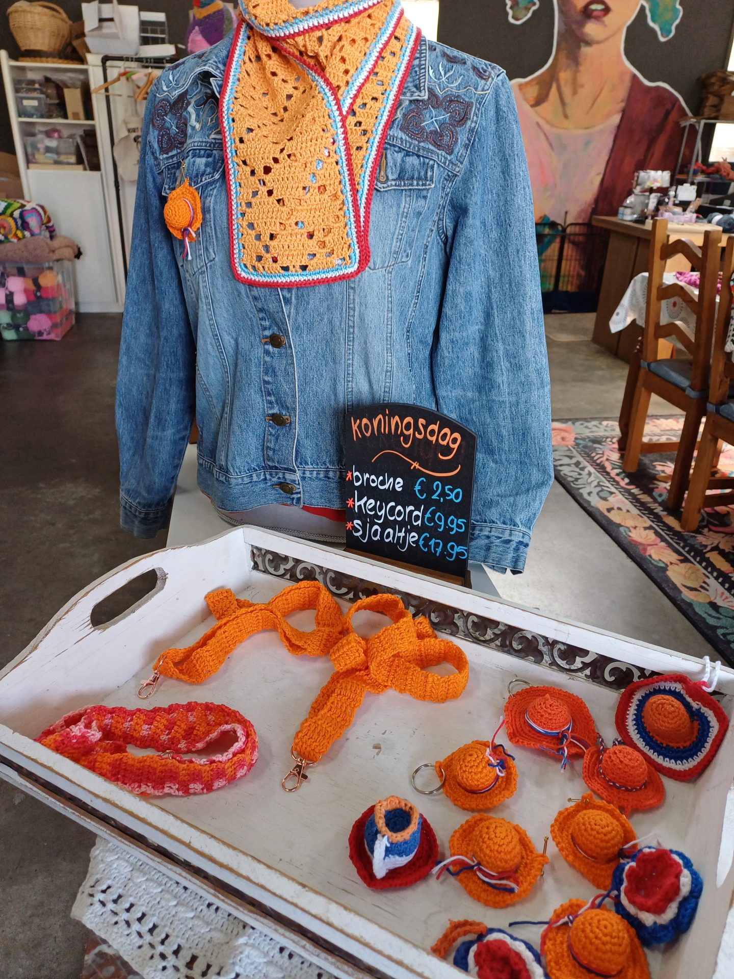 De meest leuke creaties zie ik al voorbij komen. Ik heb niet veel tijd gehad, maar ik heb wel een paar dingetjes gemaakt. Gelukkig kreeg ik ook nog wat hulp. Mocht je zelf niet haken of breien dan zijn er nog een aantal versiersels te koop in de winkel.